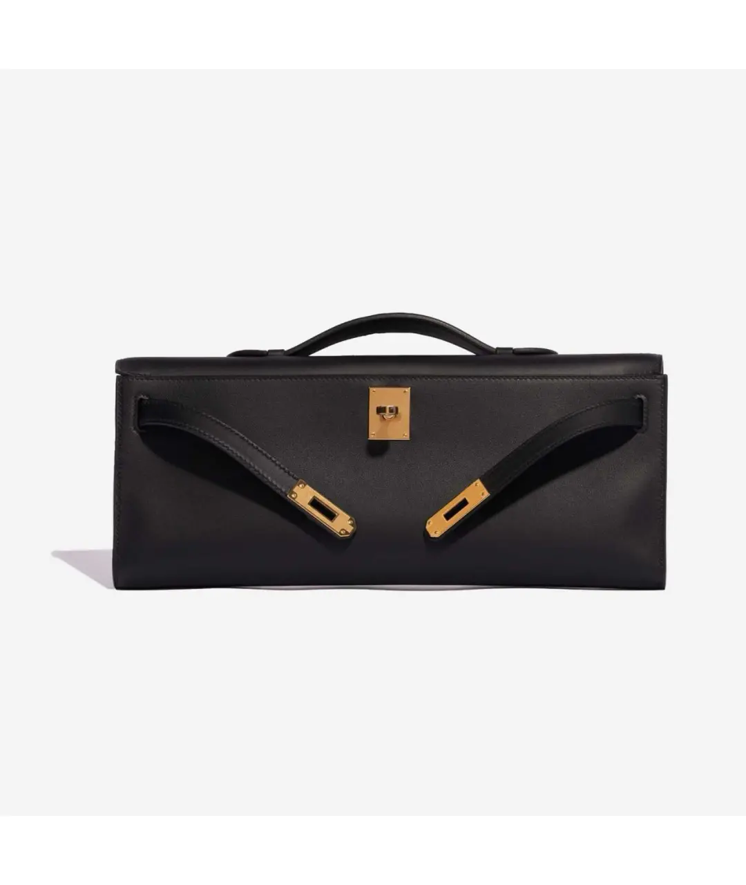 This is a beautiful Kelly Cut Clutch Black Swift Leather Gold Hardware available today.