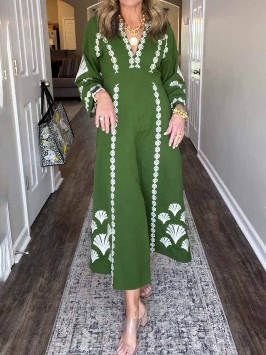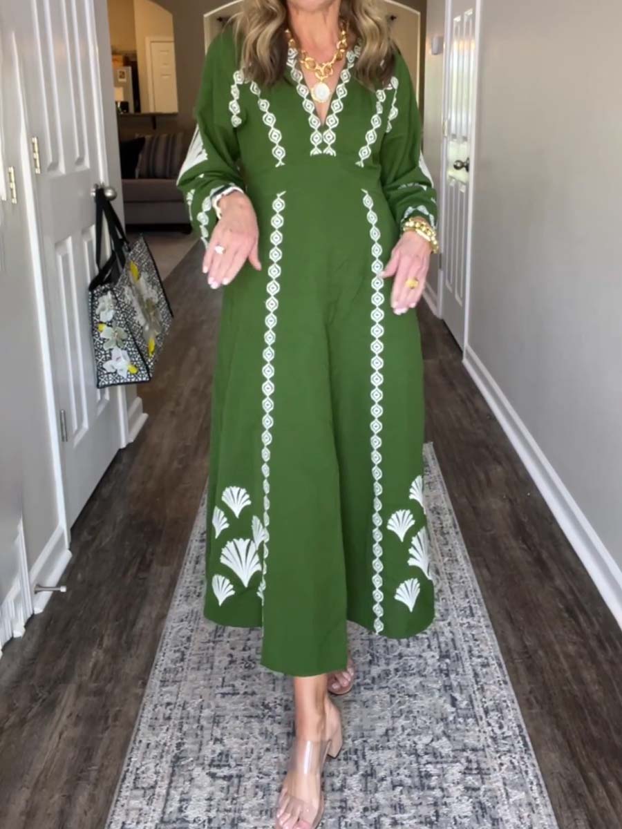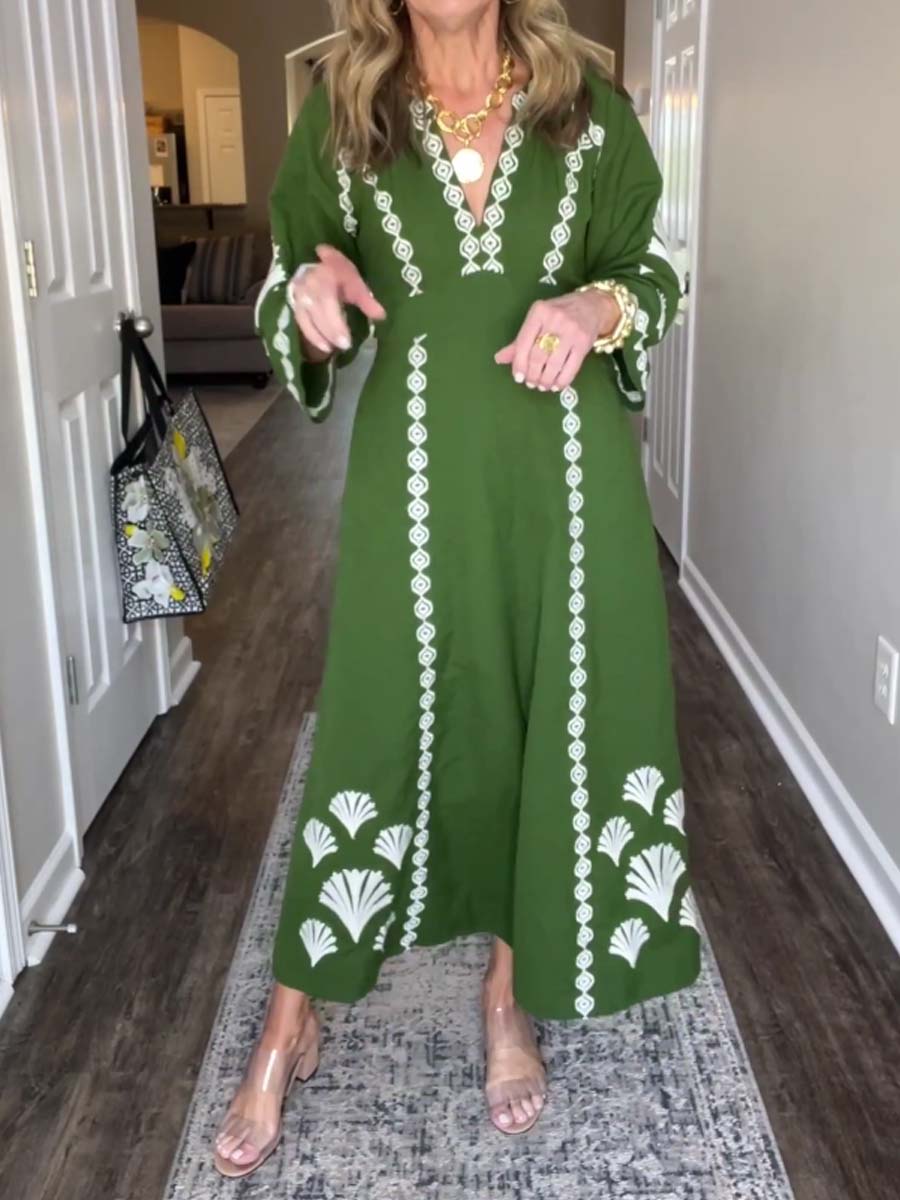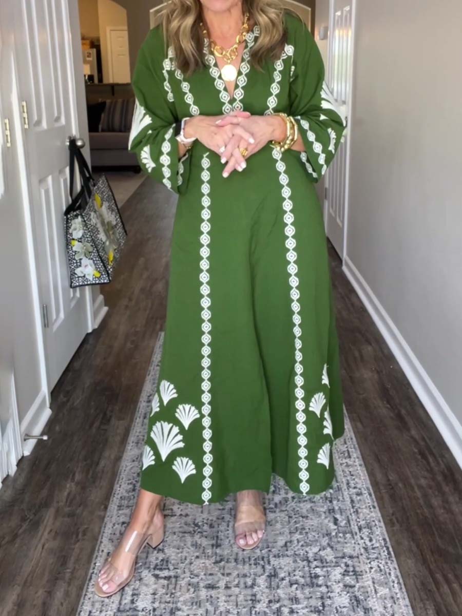 Placement Print V Neck Loose Dress