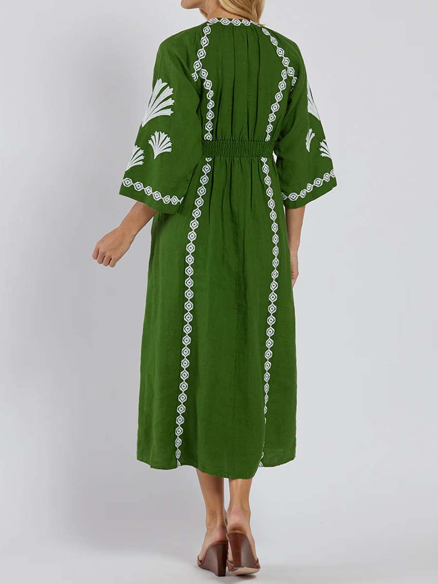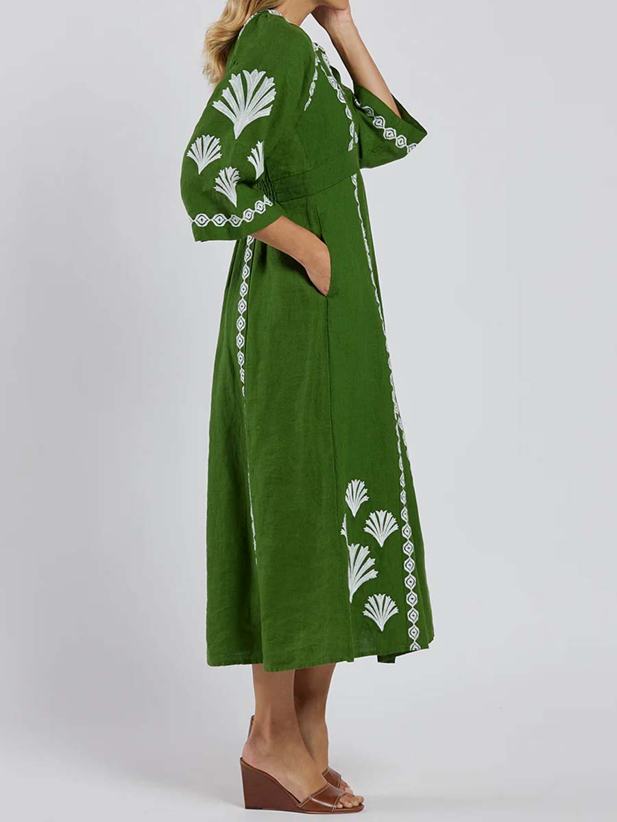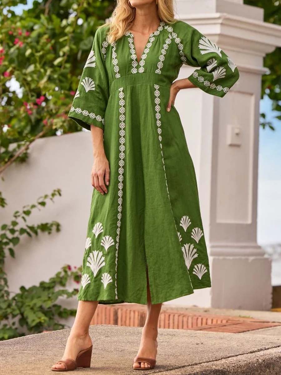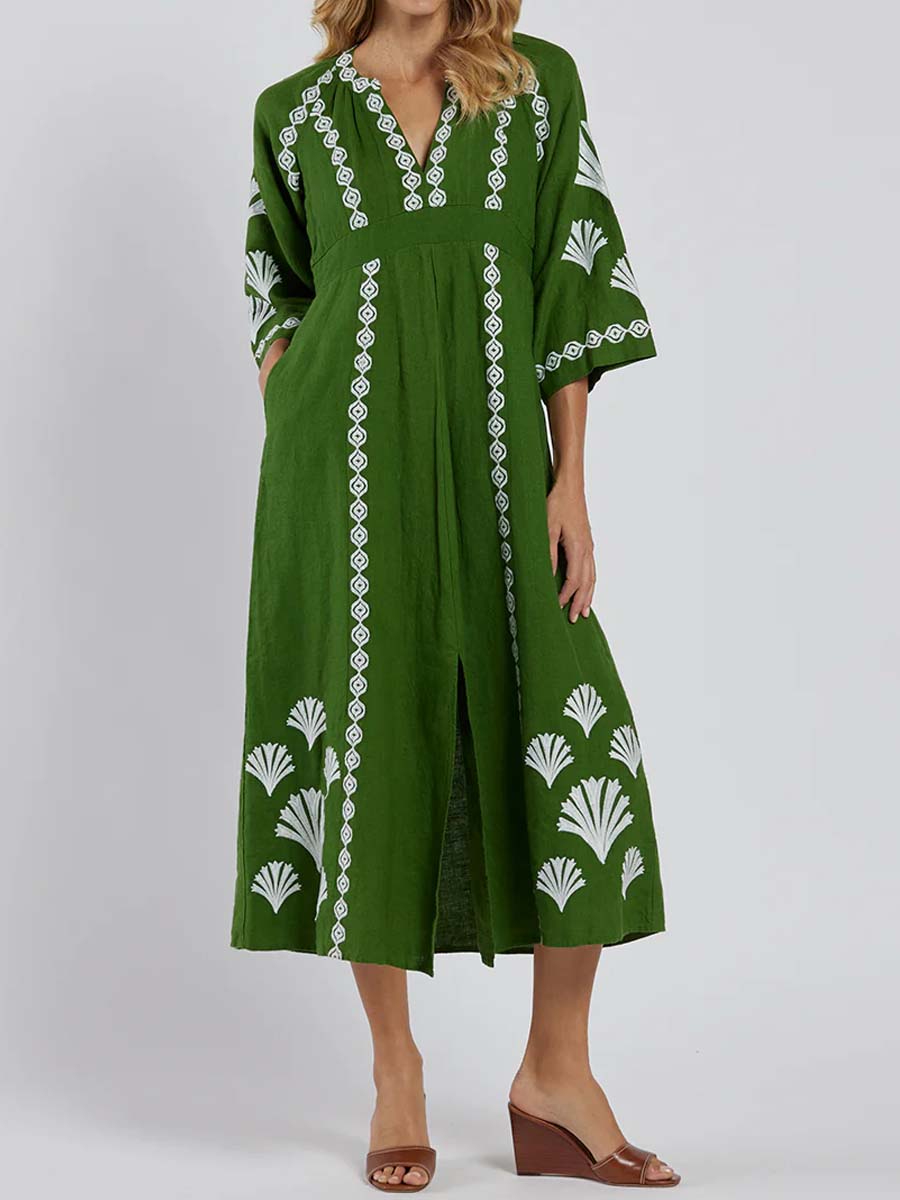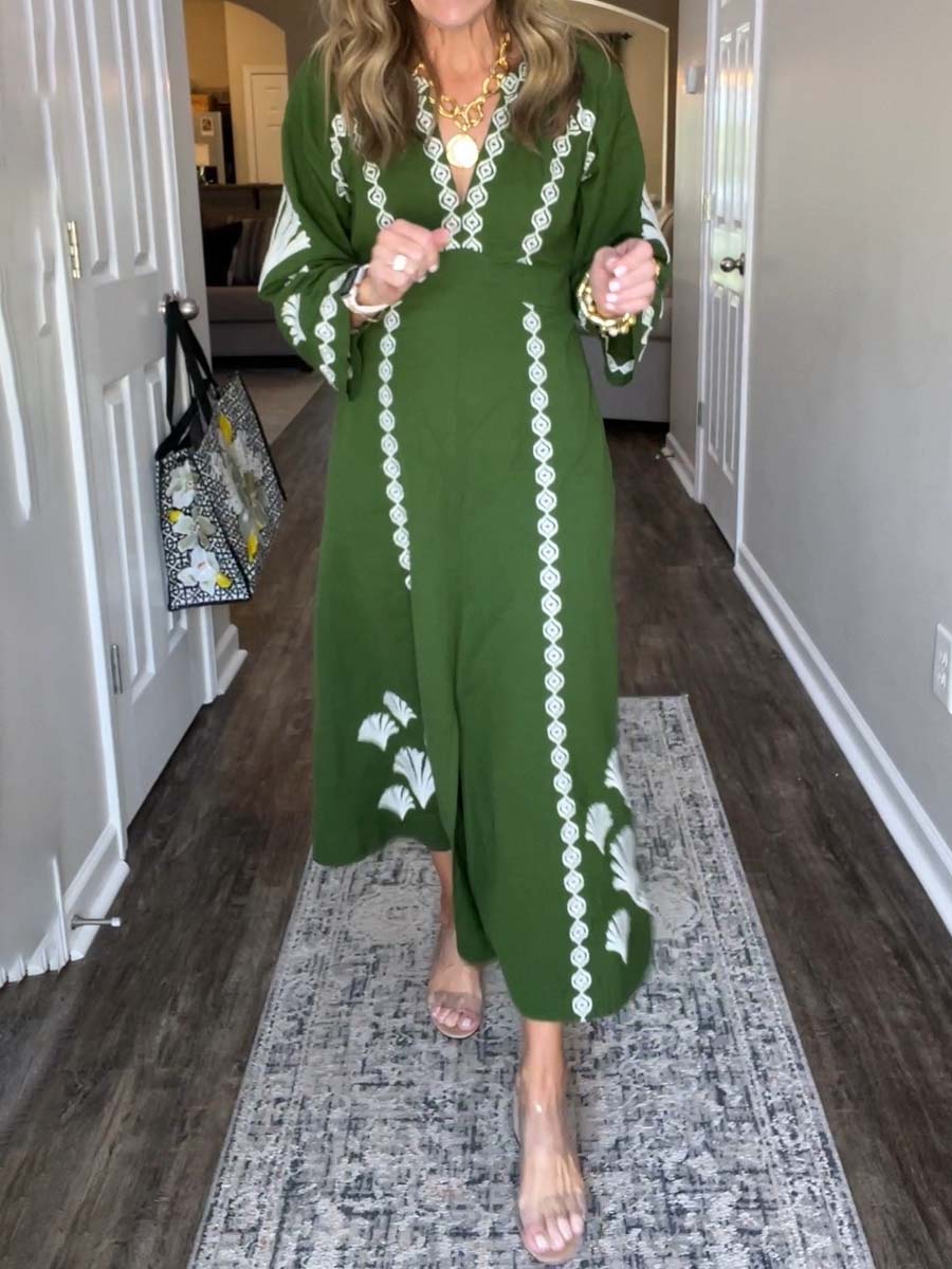 Placement Print V Neck Loose Dress