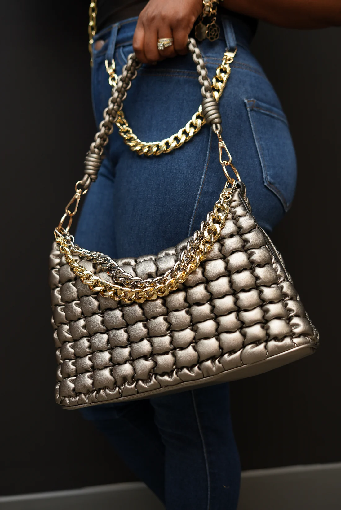 Turn heads with the Quilted Luxe Shoulder Bag by Golden