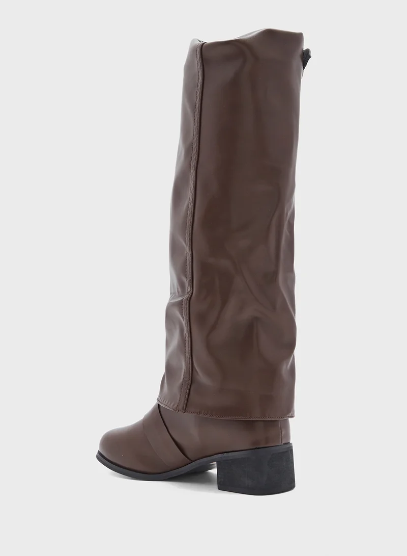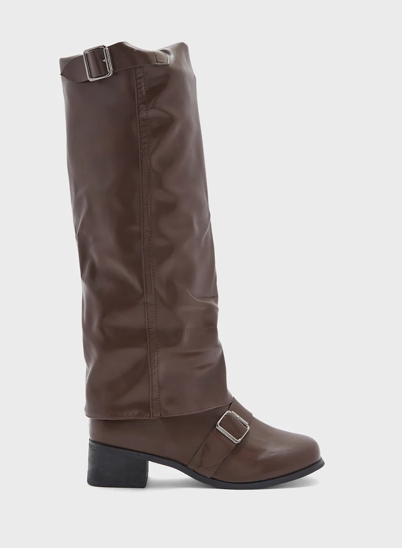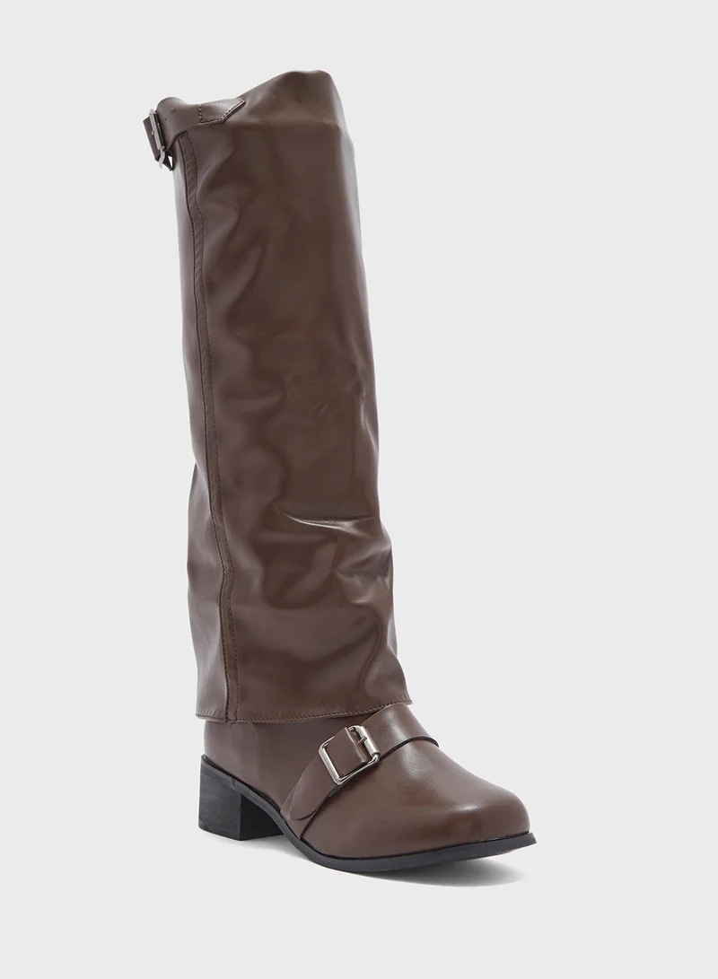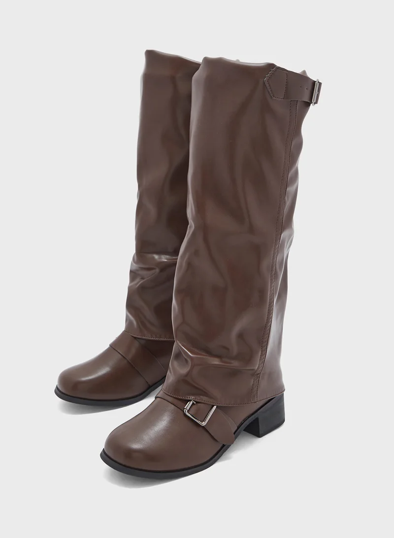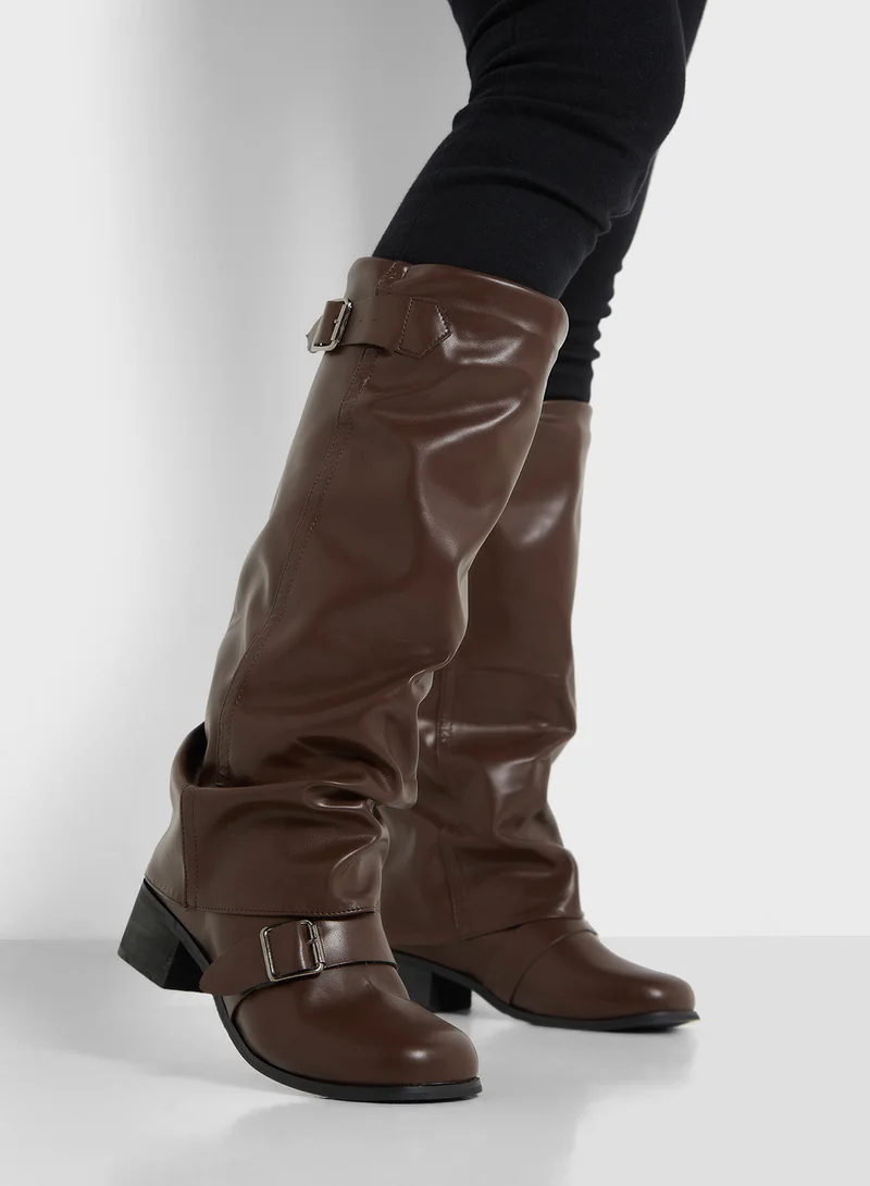 Slouchy Buckle Detail Knee Length Boots